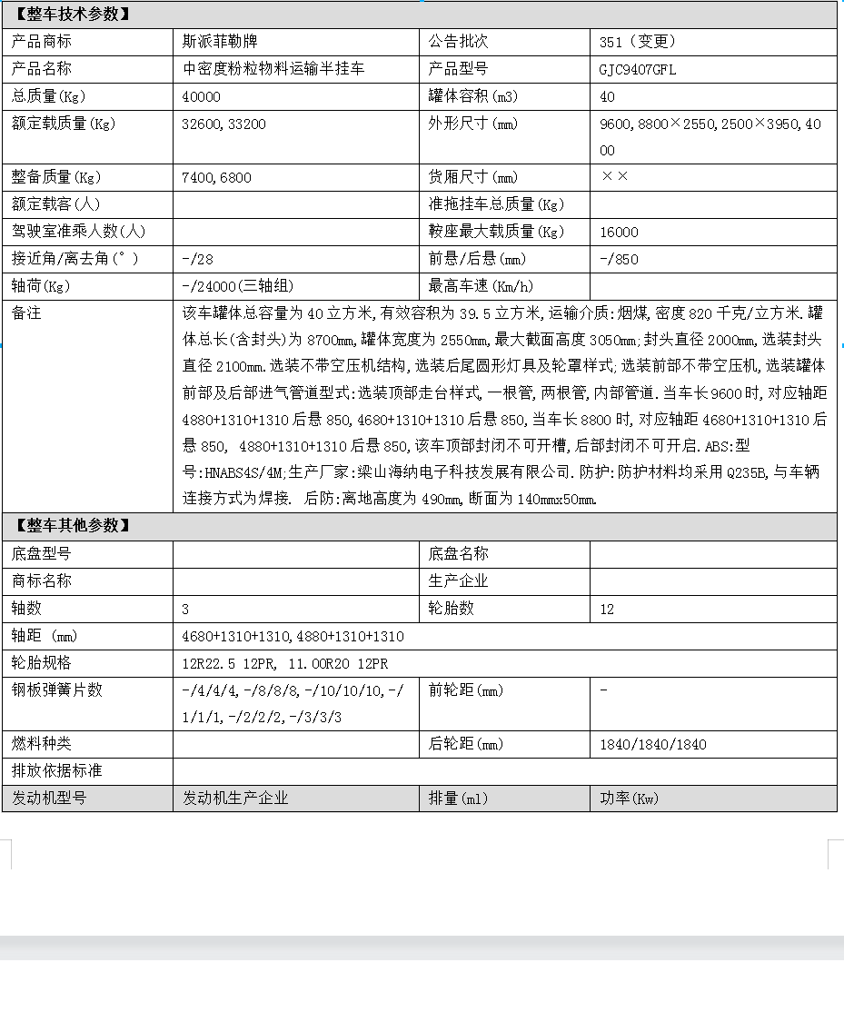 粉粒物料運輸半掛車組成:專用汽車底盤、散裝水泥車罐體等。